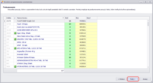 Zaproponowane pozycje zamówienia zostaną wczytane do bufora, gdzie tak przygotowane zamówienie można poddać dalszej obróbce, a następnie zoptymalizować i wysłać do hurtowni.