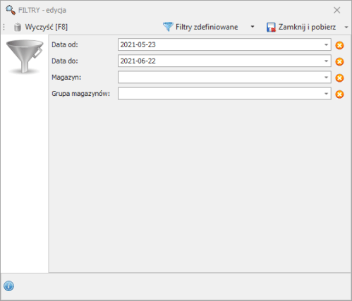 • Magazyn – magazyn dla którego ma być opracowana analiza (pozostawienie pola pustego spowoduje pobranie danych dla wszystkich aptek);