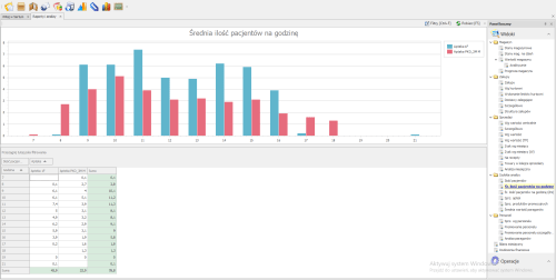 Raport znajduje się w module Raporty i analizy w widoku średnia ilość pacjentów na godzinę.